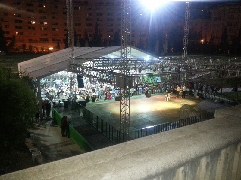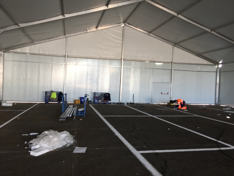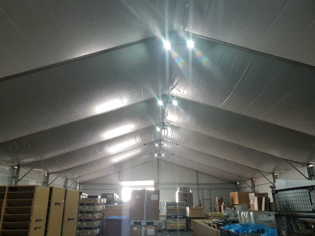 Alquiler de carpa para eventos de 20m. de ancho, por el fondo que se requiera, modulando los pórticos de 5 en 5 m. Estructura en aluminio anodizado con 4 gargantas para la circulación y sujeción de lonas de cubiertas y cerramientos.
